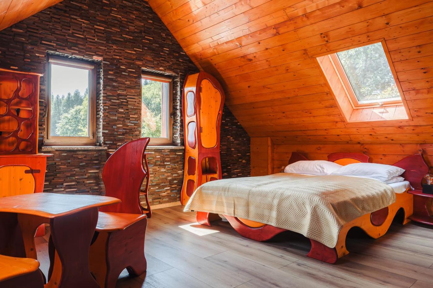 Dom z 1 sypialnią. This holiday homes special feature is the fireplace. The fully equipped kitchen features a stovetop, a refrigerator, kitchenware and an oven. Among the room amenities are a private entrance, a tea and coffee maker, a seating area as well as an outdoor dining area and garden views. The unit offers 2 beds. Dom wakacyjny - 3 osobowy. Powierzchnia pokoju ok.: 35 mkw.