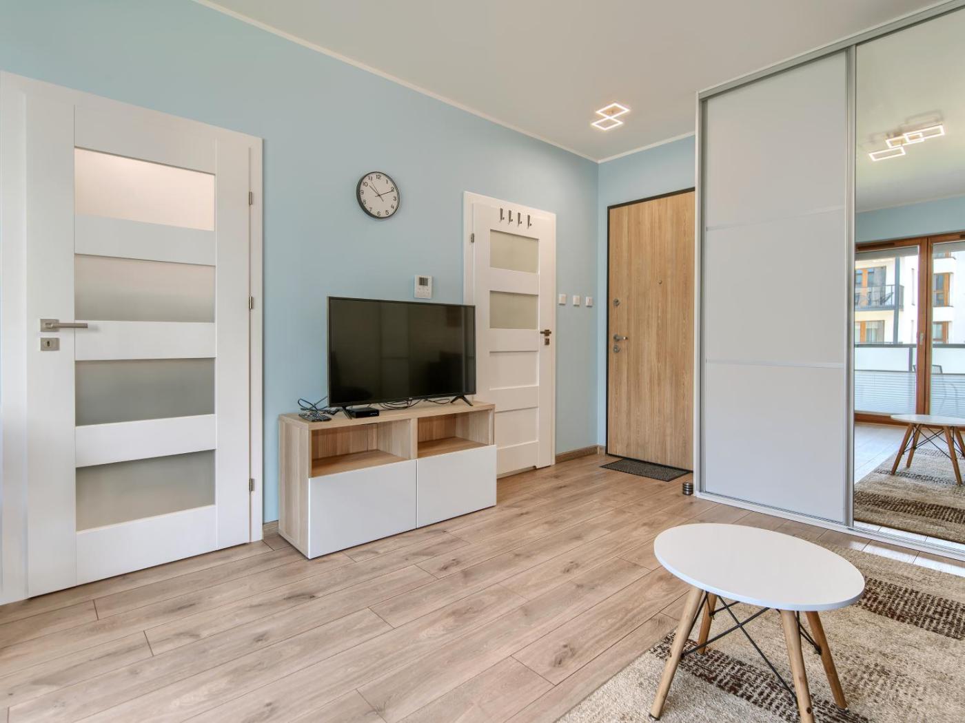 Apartament z 1 sypialnią. Featuring a private entrance, this apartment also comprises 1 bedroom, a seating area and 1 bathroom with a walk-in shower and a hairdryer. Meals can be prepared in the kitchen, which comes with a stovetop, a refrigerator, a dishwasher and kitchenware. Boasting a balcony with ancourtyard view, this apartment also provides a washing machine and a flat-screen TV with satellite channels. The unit offers 1 bed. Apartament - 2 osobowy. Powierzchnia pokoju ok.: 30 mkw.