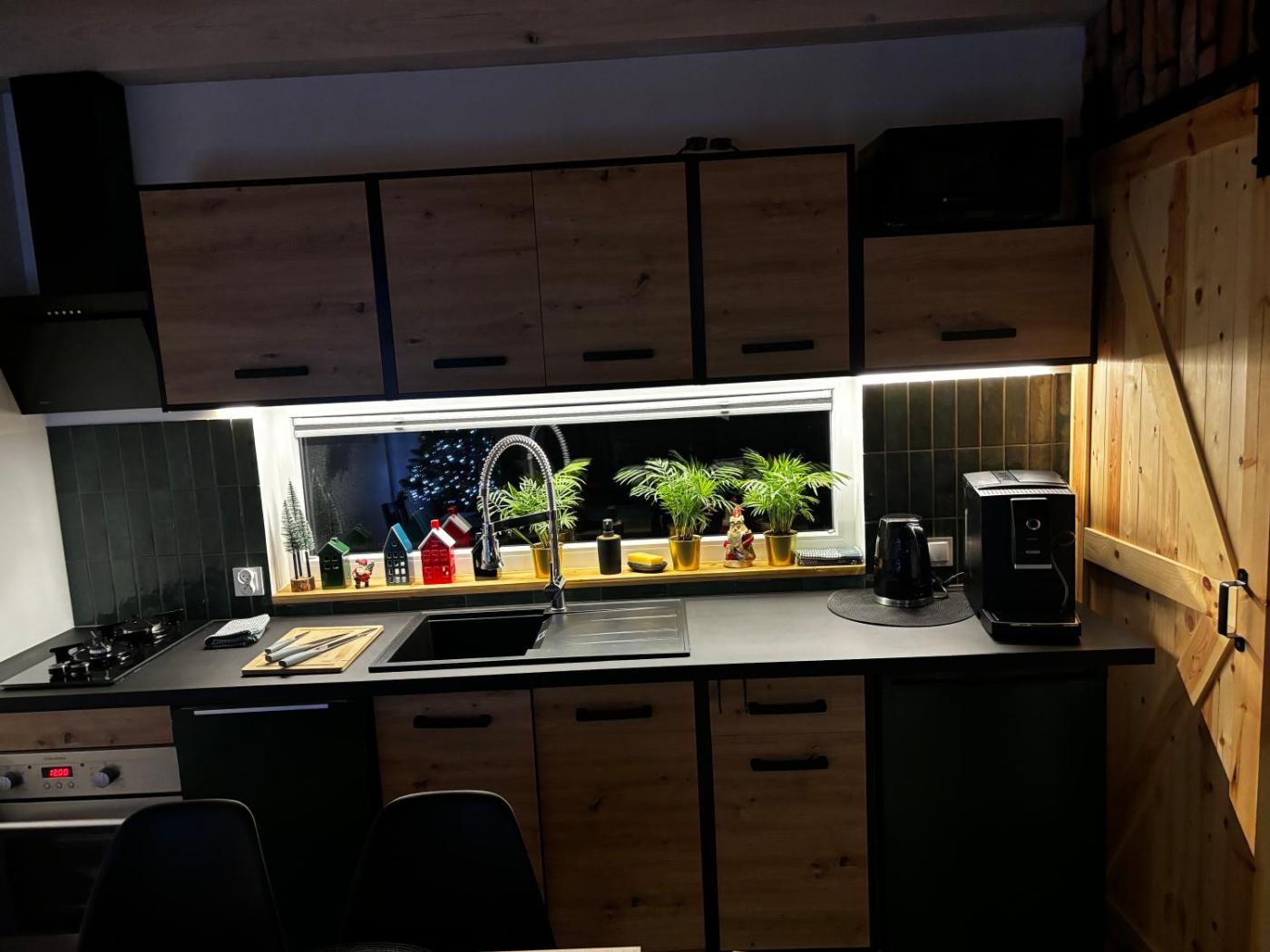 Dom z 2 sypialniami. This holiday home features a fireplace. Boasting a private entrance, this air-conditioned holiday home features 1 living room, 2 separate bedrooms and 1 bathroom with a shower. Guests will find a stovetop, a refrigerator, a dishwasher and kitchenware in the kitchen. The holiday home also comes with a barbecue. Featuring a terrace with garden views, this holiday home also features a tea and coffee maker and a flat-screen TV. The unit has 4 beds. Dom wakacyjny - 7 osobowy.