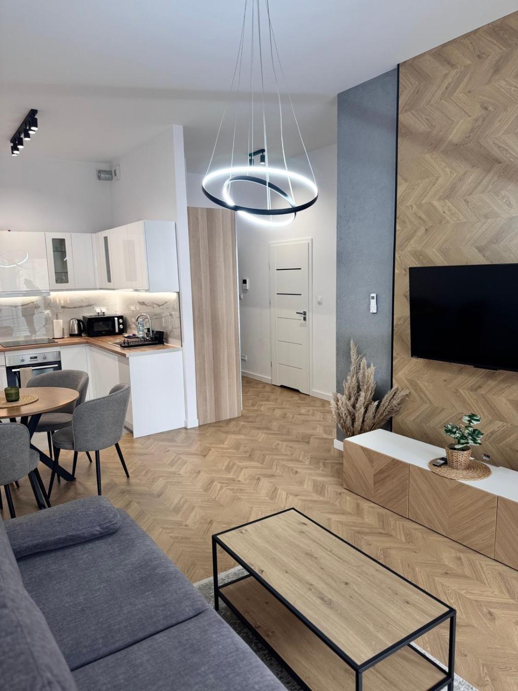 Apartament typu Deluxe z 1 sypialnią. This apartment features 1 living room, 1 separate bedroom and 1 bathroom with a shower and free toiletries. Meals can be prepared in the kitchen, which features a stovetop, a refrigerator, a dishwasher and kitchenware. This apartment is air-conditioned and has a seating area with a flat-screen TV, a washing machine, a tea and coffee maker, a dining area, as well as a wardrobe. The unit has 3 beds. Apartament - 4 osobowy. Powierzchnia pokoju ok.: 43 mkw. ;