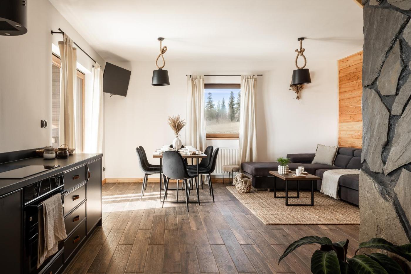 Dom wakacyjny. Guests will have a special experience as this holiday home offers a hot tub and a fireplace. Featuring a private entrance, this holiday home comprises 1 living room, 2 separate bedrooms and 1 bathroom with a shower and slippers. Guests will find a stovetop, a refrigerator, a dishwasher and kitchenware in the well-equipped kitchen. The holiday home also provides guests with a barbecue. Boasting a terrace with mountain views, this holiday home also provides soundproof walls and a flat-screen TV. The unit offers 5 beds. Dom wakacyjny - 7 osobowy. Powierzchnia pokoju ok.: 70 mkw.