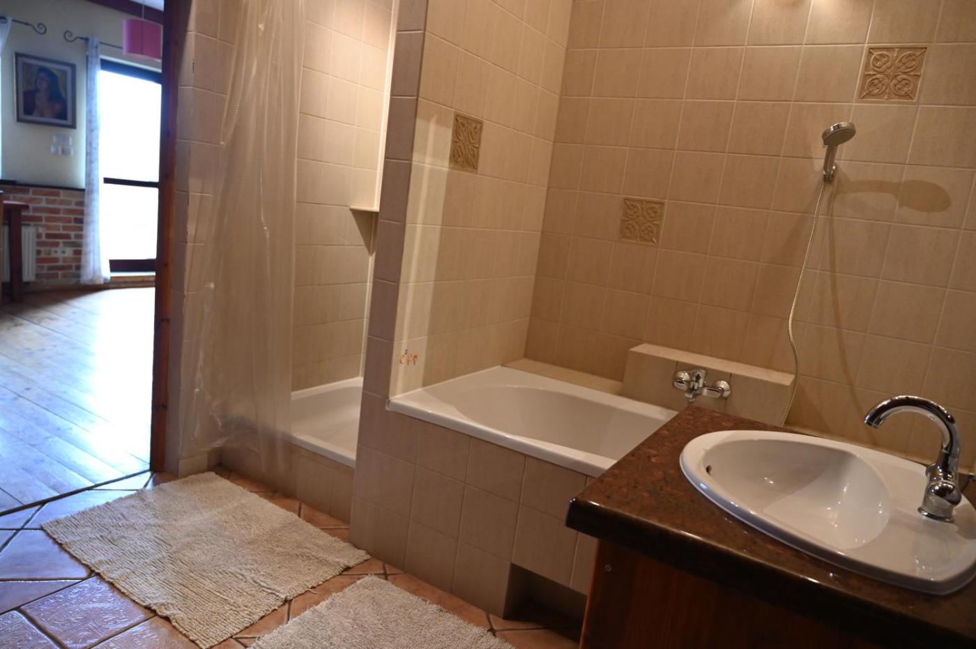 Willa. This villa offers a fireplace. This spacious villa comprises 1 living room, 2 separate bedrooms and 2 bathrooms with a bath and a shower. Guests can make meals in the kitchen that comes with a stovetop, a refrigerator, a dishwasher and kitchenware. The villa provides a washing machine, a tea and coffee maker, a dining area, a flat-screen TV, as well as garden views. The unit offers 5 beds. Willa - 11 osobowy. Powierzchnia pokoju ok.: 300 mkw.